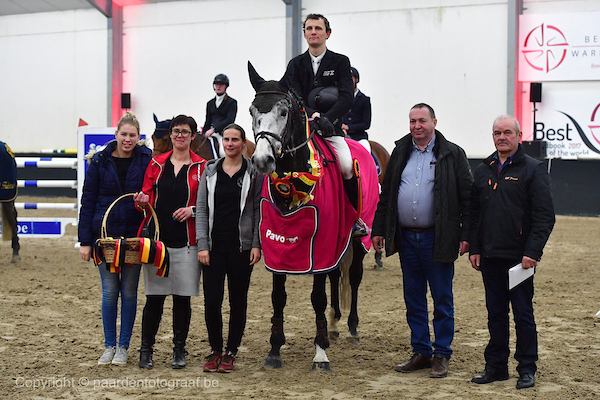 Before the final of the 7-year-old stallions, Leandro VG, a son of Gitano van Berkenbroeck, was already in the lead in the ranking. In the final, the stallion managed to show his exceptional qualities once again! Thanks to another clear round Leandro, under the saddle of Jeroen de Winter, could take home the championship title. |